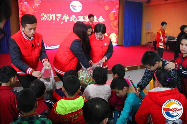 席間,東方正捷的愛(ài)心人士們?cè)谠┑絹?lái)之際,給孩子們帶來(lái)了瓜子、糖果,場(chǎng)面熱鬧非凡,他們還為特教中心的孩子們捐贈(zèng)了價(jià)值八千余元的餐具和打印機(jī)等物品,讓特教的孩子們感受到了來(lái)自社會(huì)大家庭的關(guān)愛(ài)。