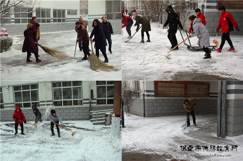 每年進入冬季,保定市特殊教育中心都會及時制定掃雪預(yù)案,對掃雪區(qū)域分工、人員分工、工具分發(fā)等工作進行提前安排和部署,確保第一時間內(nèi)清除積雪,保障師生出行順暢,保障校園環(huán)境清潔,提升教師主人翁責(zé)任意識,營造和諧氛圍,打造文明校園。