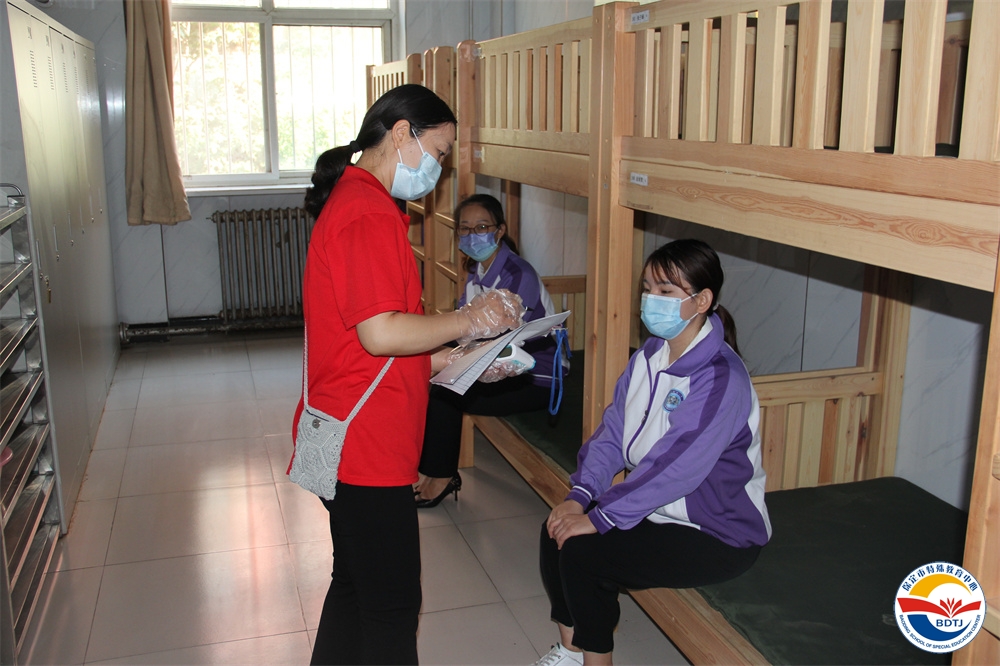 環(huán)節(jié)二:宿舍學生上下間隔,同向就寢,錯時洗漱;學生不串宿舍,分區(qū)域活動;一名宿管老師在學生進入宿舍后常規(guī)點名,測溫,兩名宿管老師進行常規(guī)巡視,對缺勤學生進行追蹤,并與家長聯(lián)系。