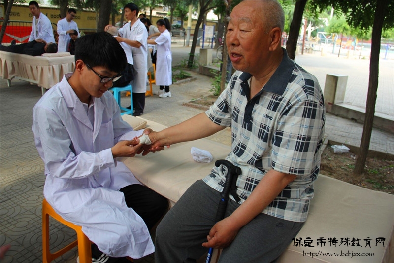 為貫徹落實(shí)職業(yè)教育活動(dòng)周精神,弘揚(yáng)“職教改革四十年,產(chǎn)教融合育工匠”活動(dòng)精神,我校積極行動(dòng)起來(lái),成立機(jī)構(gòu)、制定方案、明確目標(biāo)、豐富內(nèi)涵,全校上下聯(lián)動(dòng)、共同參與,掀起了活動(dòng)周高潮。5月10日學(xué)校組織盲中專的學(xué)生到列電社區(qū)搞社會(huì)實(shí)踐活動(dòng),為社區(qū)居民免費(fèi)做按摩。此次活動(dòng)既鍛煉了學(xué)生的按摩技能,又回饋感恩了社會(huì)?;顒?dòng)中學(xué)生們親切的態(tài)度,嫻熟的技法贏得社區(qū)領(lǐng)導(dǎo)和居民的一致好評(píng)。