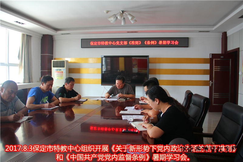 8月3日,保定市特教中心黨支部召開了領導班子及中層黨員干部《關于新形勢下黨內(nèi)政治生活的若干準則》和《中國共產(chǎn)黨黨內(nèi)監(jiān)督條例》暑期學習會。