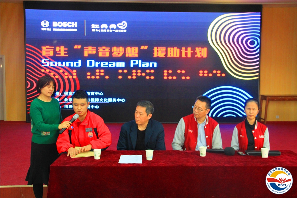 在國(guó)際助殘日到來之際,11月21日下午,在特殊教育中心三樓多功能廳,成功舉行“聲音夢(mèng)想”援助計(jì)劃——視障青少年語言基礎(chǔ)興趣班開班及掛牌儀式,“聲音夢(mèng)想”援助計(jì)劃正式落戶該校!此計(jì)劃由北京市紅丹丹視障文化服務(wù)中心主辦,博世中國(guó)慈善中心資助,支持全國(guó)七所盲校搭建“聲音夢(mèng)想錄音室”,保定市特教中心是第四個(gè)項(xiàng)目點(diǎn)。